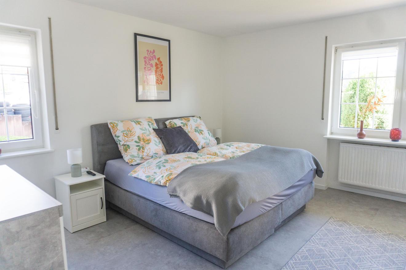 Unsere moderne Ferienwohnung (115 m²) umfasst eine voll ausgestattete Küche mit separater Essecke, ein großes und komfortables Wohnzimmer mit Satelliten-TV, 2 Doppelschlafzimmer mit Boxspringbetten (1,80 m x 2,00 m), ein Bad mit Dusche und WC, sowie eine eine schöne und große Terrasse mit Sitzgruppe, Grillplatz und Strandkorb. Die Ferienwohnung liegt am Ortsrand von Leiwen in ruhiger Lage. Der Moselradweg und auch die Wanderwege liegen in unmittelbarer Nähe.